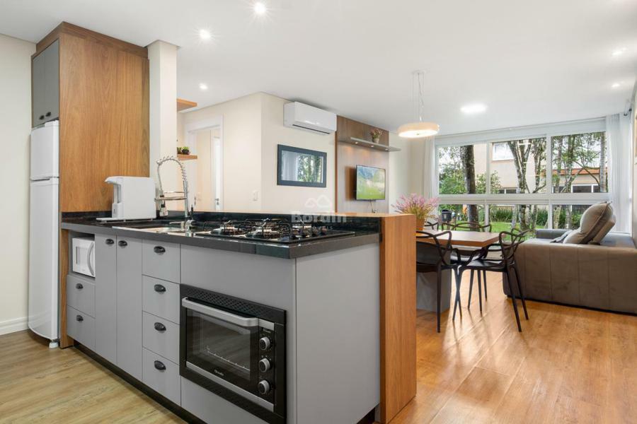 Apartamento mobiliado com 70m² de área privativa, oferecendo ambientes bem distribuídos. Oferece cozinha com churrasqueira, sala de jantar e sala de estar climatizada com ar-condicionado, integradas à sacada fechada. Dispõe ainda de área de serviço separada, banheiro social e dois dormitórios, sendo uma suíte, ambos equipados com ar-condicionado. Inclui ainda uma vaga de garagem.