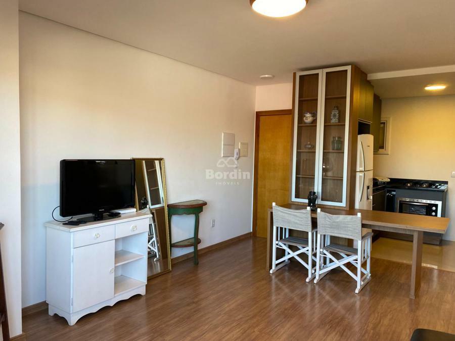 Apartamento mobiliado no Residencial Via Vêneto. Conta com dois dormitórios sendo uma suíte, banho social, sala de estar, sala de jantar, cozinha com área de serviço, sacada com churrasqueira e uma vaga de garagem.