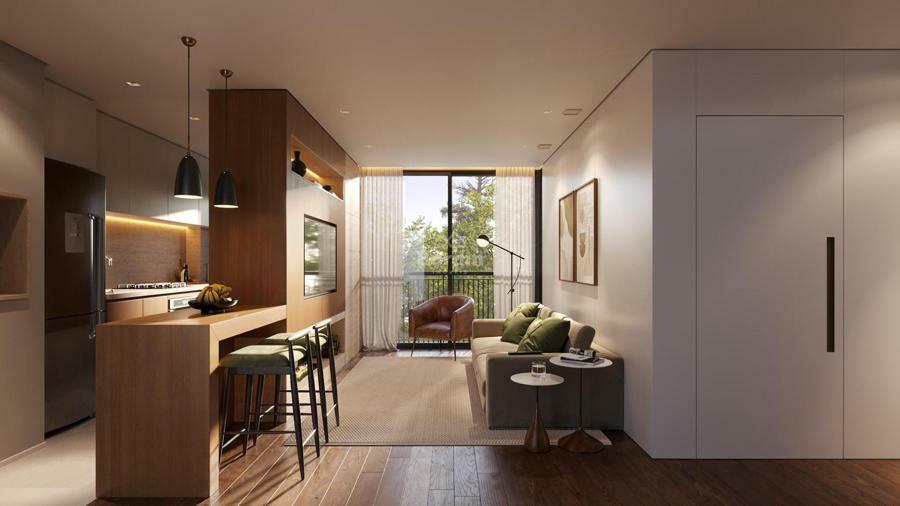 Oferece apartamentos com dois dormitórios, sendo uma suíte, com cozinha com churrasqueira, sala de jantar, sala de estar, área de serviço e banheiro social. Além de layout de duas suítes e lavabo com as mesmas comodidades, em ambas as opções com dois dormitórios há possibilidade de terraço privativo. Para quem busca mais espaço, conta com unidades de três suítes com lavabo, algumas com opção de estar íntimo. Algumas opções ainda incluem sacada.