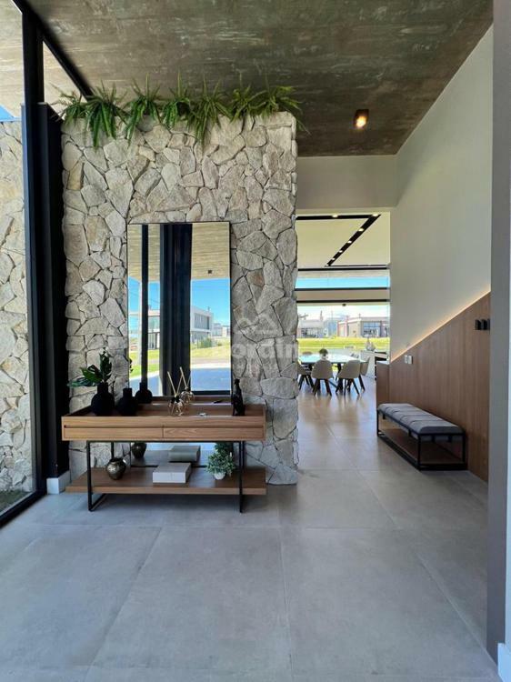 Casa mobiliada e decorada com área privativa de 232,76 m², localizada à beira do lago, em condomínio fechado. Conta com cozinha americana equipada com churrasqueira, sala de jantar e sala de estar com lareira, criando um ambiente amplo e acolhedor, que se conecta diretamente ao pátio dos fundos, além de área de serviço separada, lavabo, três suítes, sendo uma delas master com closet. Dispõe ainda de banheiro externo e quatro vagas de garagem. A propriedade possui acabamentos de rebaixamento em gesso e esquadrilhas em PVC, oferece uma excelente posição solar, iluminação em LED, sistema de climatização e jardim com irrigação.