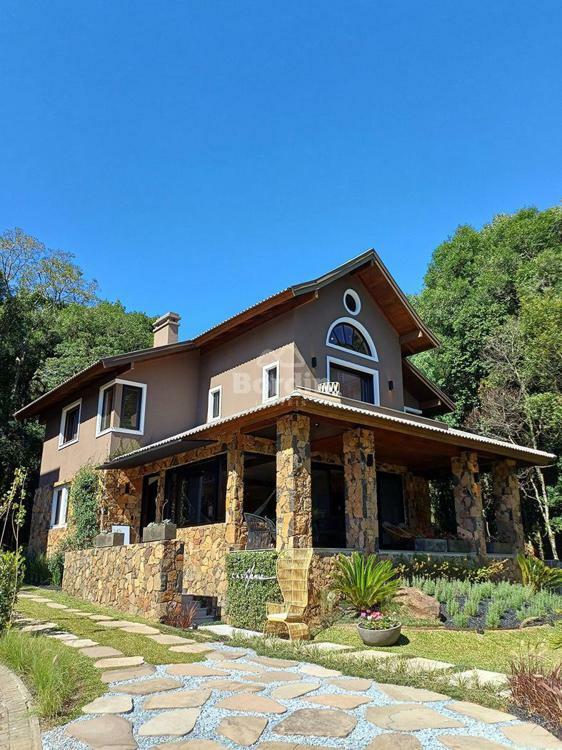Casa mobiliada e decorada com 282m² de área privativa, recém-reformada, localizada em condomínio fechado. Dispõe de cozinha americana equipada com churrasqueira, sala de jantar, sala de estar, área de serviço, lavabo, escritório e adega. Conta com duas suítes, sendo uma delas com banheira de hidromassagem e lareira. O acabamento é de alto padrão, com piso de madeira original restaurado, paredes em pedra, detalhes em quartzo e móveis sob medida em madeira, proporcionando sofisticação e conforto.