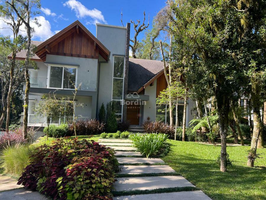 Residência construída em estilo contemporâneo, com uma área construída de 525,06 m². Conta com quatro suítes, sendo duas suítes máster com closet e hidromassagem, conta também com amplo living dois ambientes com lareira, cozinha integrada, lavabo, espaço gourmet externo com churrasqueira, área de serviço, adega, despensa, mezanino, sacada, garagem coberta para dois veículos, espera para água quente, espera para calefação, espera para split, esquadrias em PVC com vidros duplos e tela e piso em porcelanato.