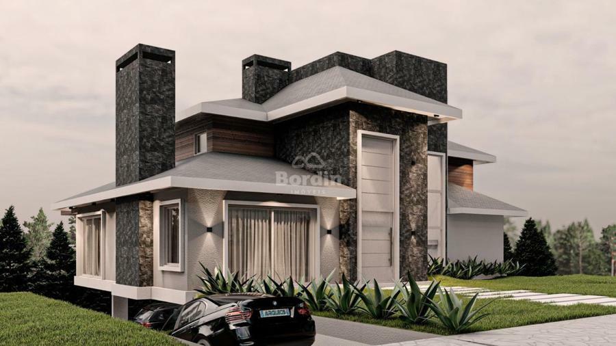Terreno em leve declive com projeto aprovado para a construção de residência em condomínio fechado. A casa, com aproximadamente 386,13 m² de área construída, será composta por três pavimentos. No subsolo, haverá garagem coberta para dois veículos, depósito e elevador. O térreo contará com cozinha, ampla salas de jantar e estar integradas, com acesso a uma espaçosa varanda, além de área de serviço separada, lavabo e uma suíte master com closet. O segundo andar possuíra mais três suítes.